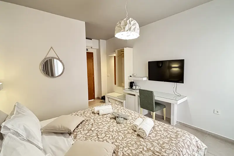Our Double rooms at Pitsakis Hotel have been recently renovated and are ideal for two friends visiting Tolo or a couple on vacation or a romantic escape. Enjoy your holidays in the Peloponnese at Pitsakis Hotel, warm and bright rooms with a double bed or two twin beds and a balcony to sit and take in the sun with a cold drink in-hand. Our rooms are equipped with modern amenities and situated in a privilidged location only a few steps from Tolo beach.
