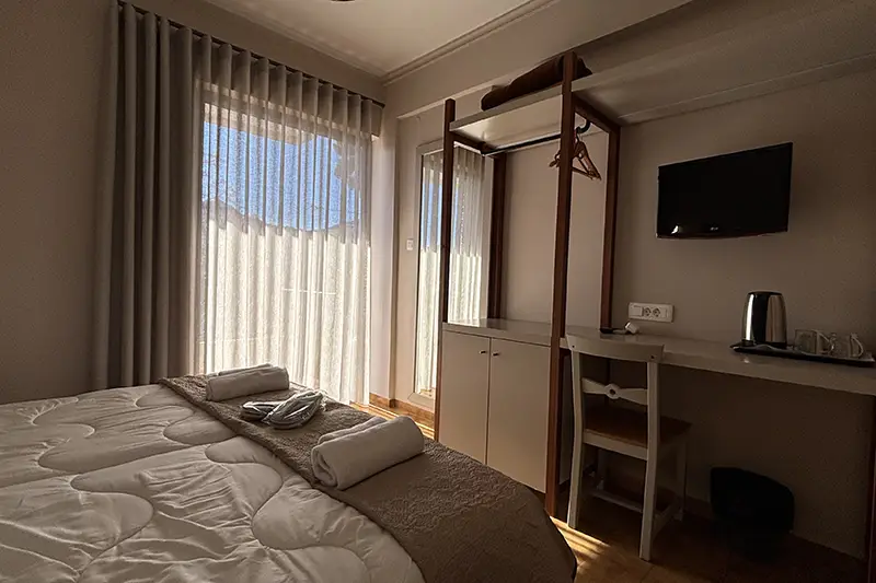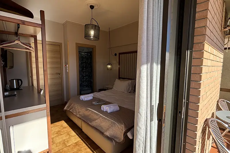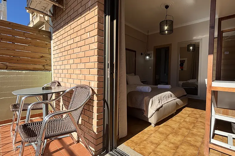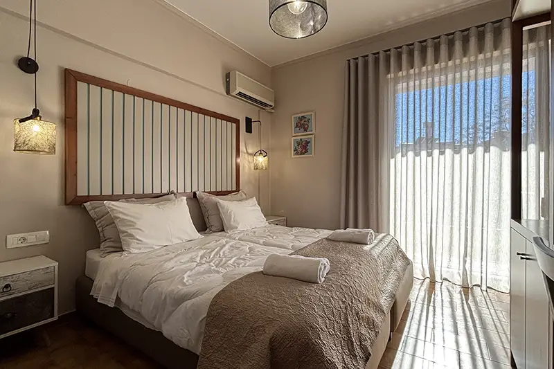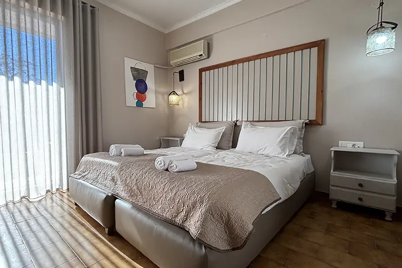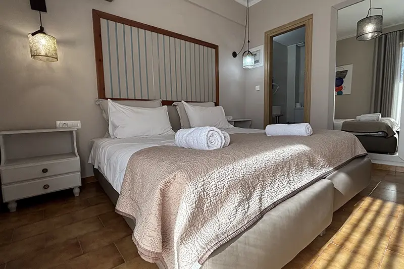 Our Two Bedroom Apartment in Tolo, are decorated in tones of beige as well as fabric, wood and metal details for a modern yet relaxing aesthetic. Our Two Bedroom Apartment offers accommodation with separate bedrooms in Tolo with two double beds or four single beds or a double and 2 single beds depending on what better suits you and you family or friends. Each bedroom has a balcony for sunlight and fresh air while equipped with all modern amenities. These rooms are a great choice for a group of friends exploring the Peloponnese or a family holiday in Tolo, and don't forget that our hotel is only a couple minutes from the beach on foot.